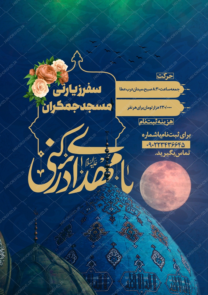 طرح پوستر لایه باز سفر زیارتی جمکران psd