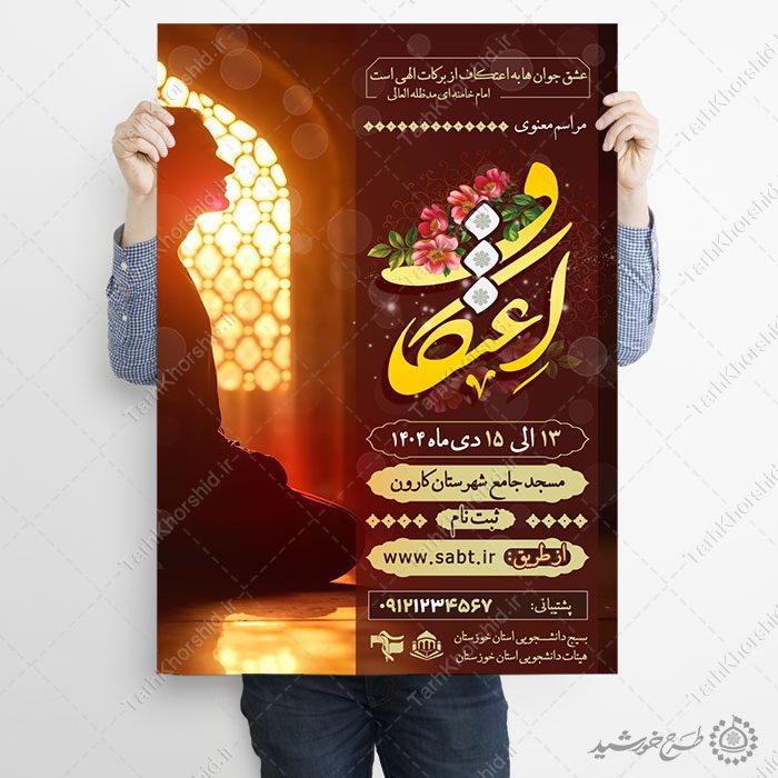 طرح پوستر مذهبی اعتکاف لایه باز با تایپوگرافی