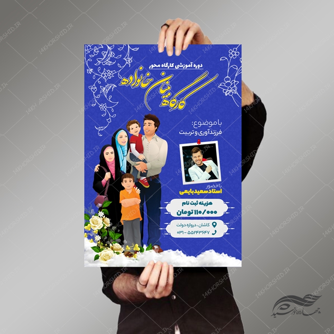 پوستر برای کارگاه خانواده و فرزندآوری طرح پوستر همایش خانواده . برای استفاده در طراحی جهت چاپ روی انواع برگه A4/A2 /A3 و بنر مجازی مناسب است. شما میتوانید از پوستر کارگاه آموزش خانواده در فتوشاپ ویرایش نمایید و همه قسمت ها رو به دلخواه تغییر بدید.