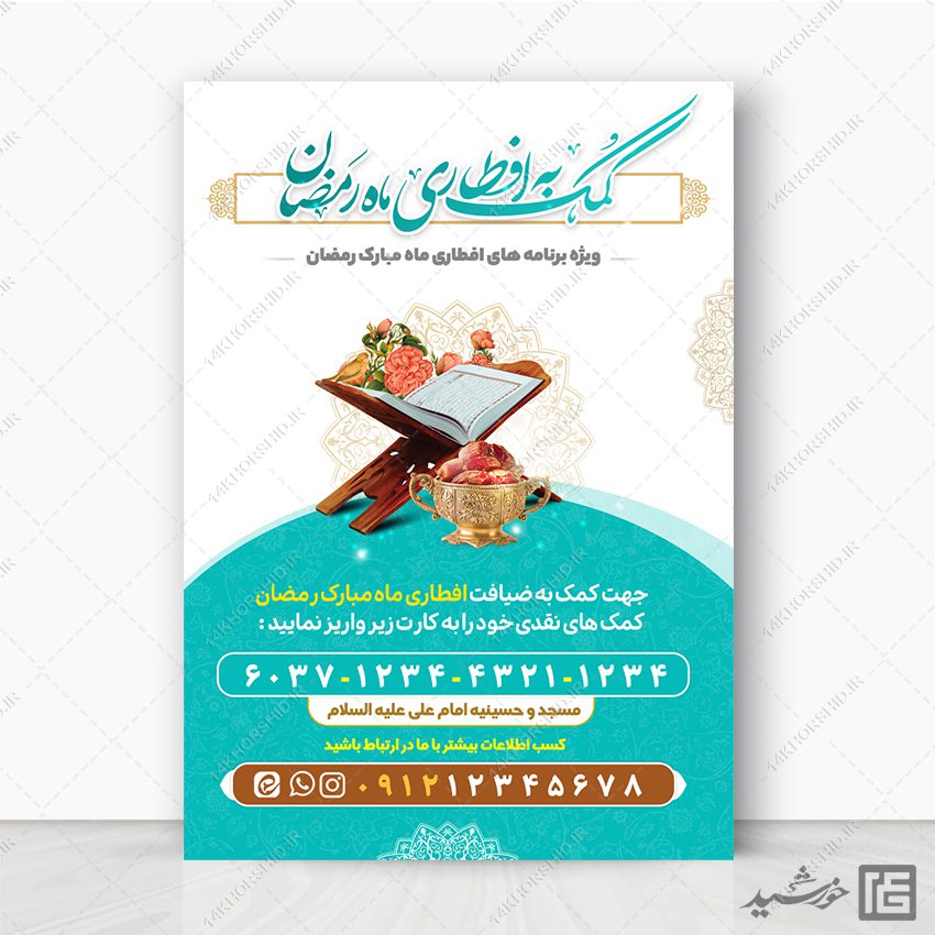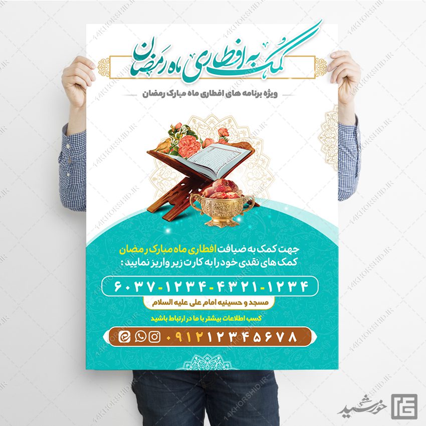 در این پست برای شما عزیزان پوستر لایه باز کمک و نذر افطاری رمضان psd منتشر کردیم.این فایل روی برگه A3/A4 قابل چاپ یا انتشار است