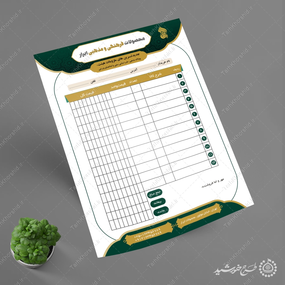 • طرح های مرتبط با فاکتور فروش فرهنگی مذهبی را میتوانید در قسمت آرشیو مشاهده نمایید.