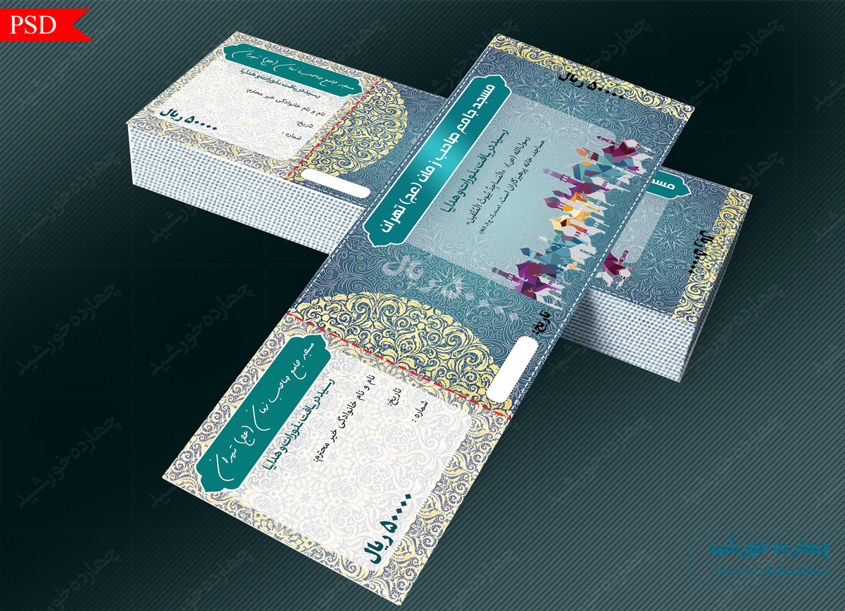 فایل رسید پول لایه باز کمک به مساجد psd