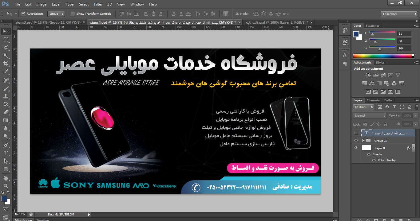 فایل لایه باز تابلو خدمات موبایلی عصر psd