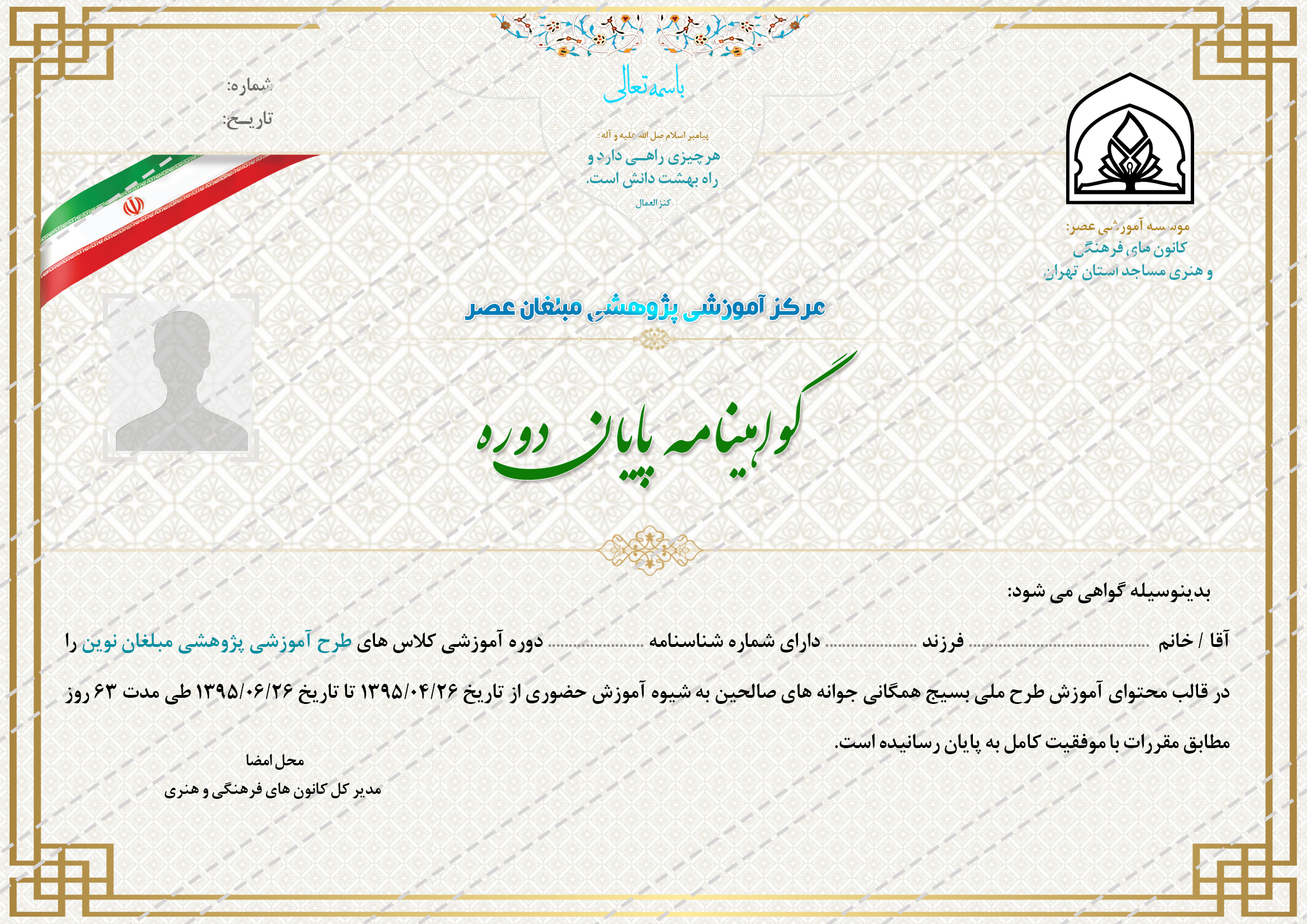 فایل لایه باز گواهی و مدرک پایان دوره عصر psd