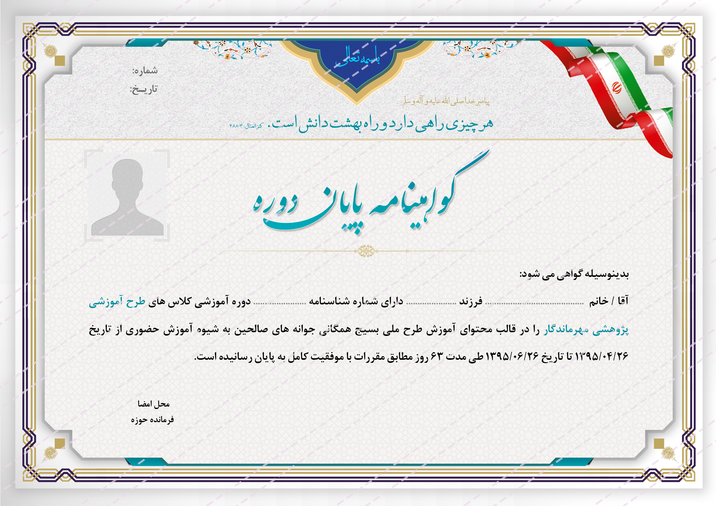 فایل لایه باز گواهی و مدرک پایان دوره psd