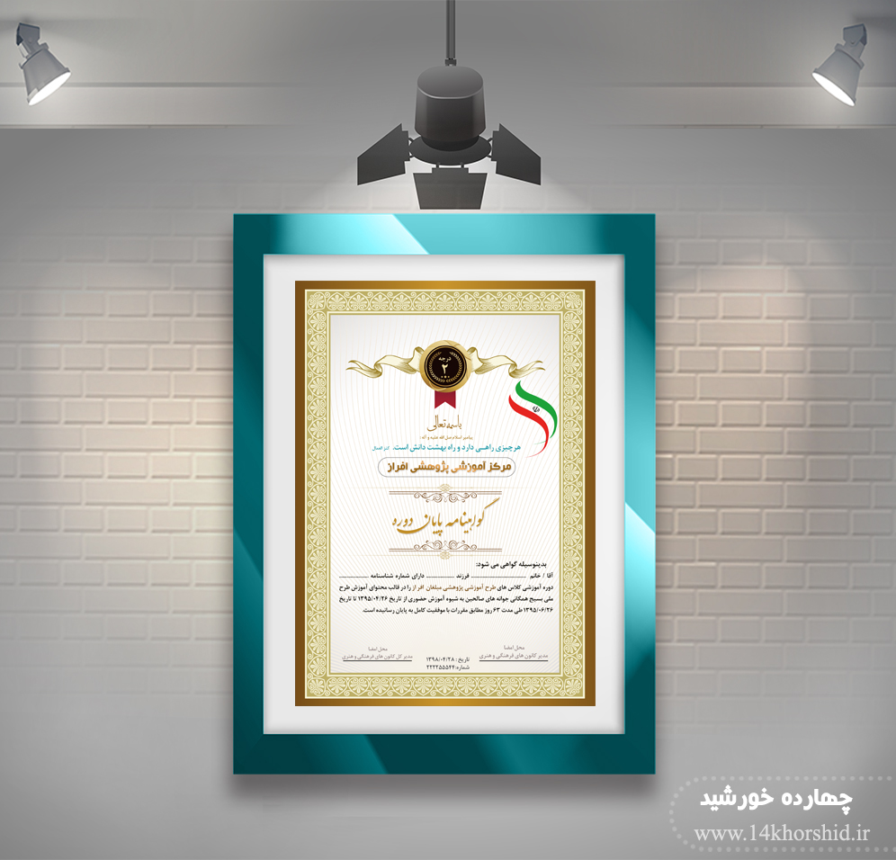 فایل گواهی ومدرک پایان دوره لایه باز عمودی چهار psd