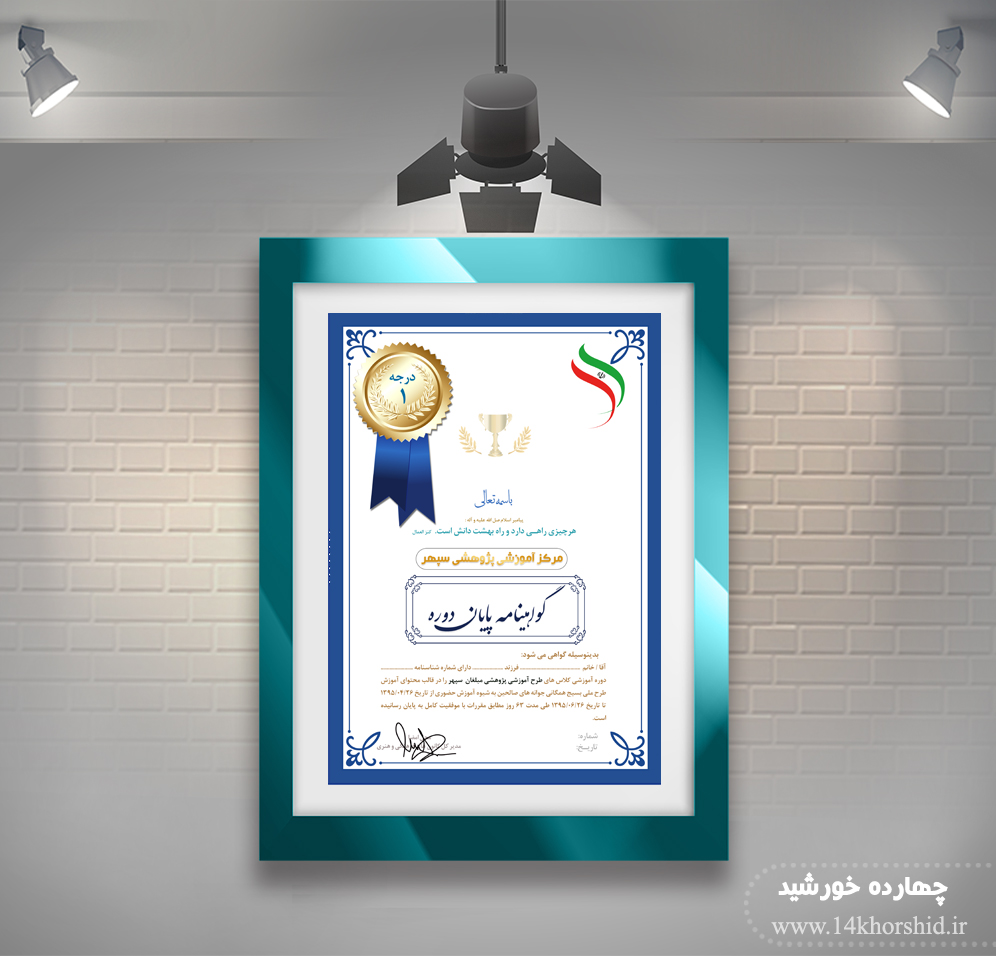 فایل گواهی ومدرک پایان دوره لایه باز عمودی هفت psd