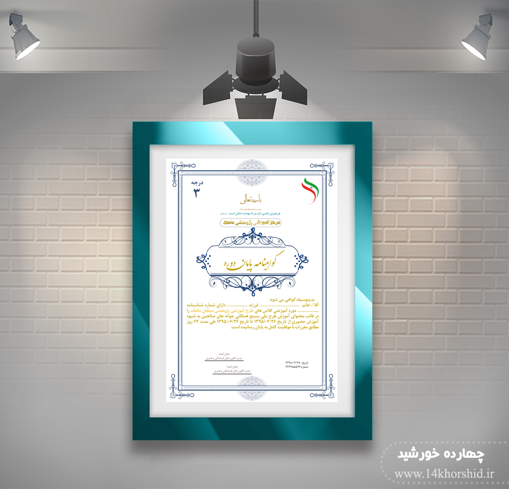 فایل گواهی و مدرک پایان دوره لایه باز عمودی دو psd