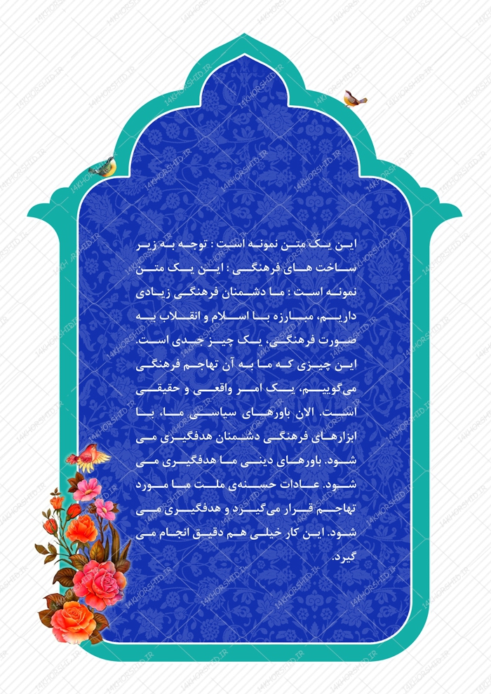 ۱- هیچ گونه خدمات آموزش، ویرایش و چاپ از طرف طرح خورشید انجام نمی شود و خریدار می بایست به نرم افزار های مورد نیاز مثل فتوشاپ تسلط کافی داشته باشد.