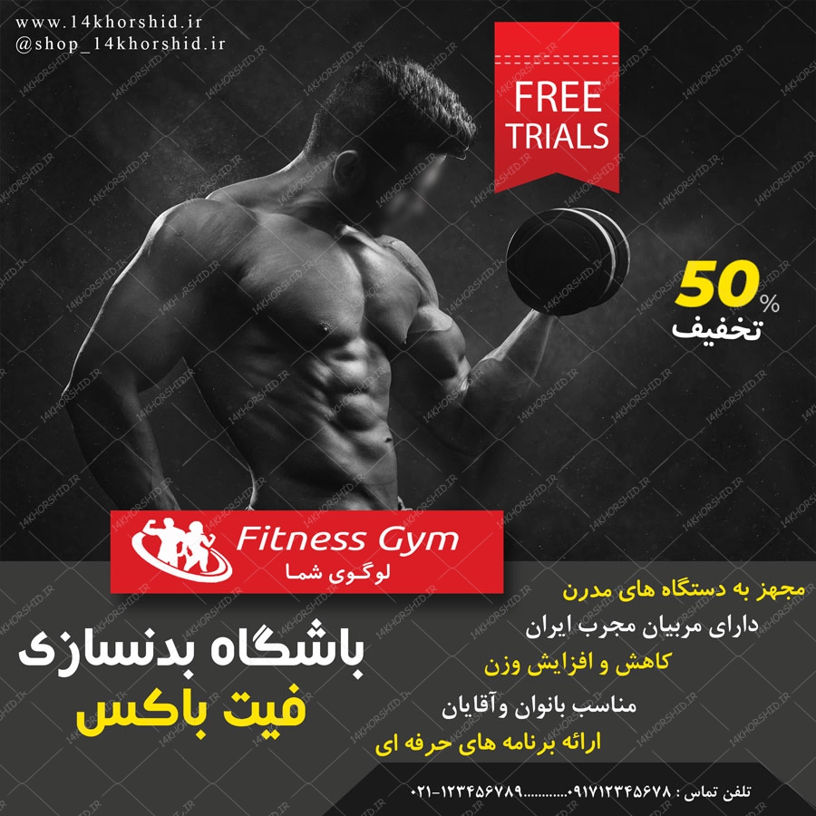 قالب بنر پست و پروفایل لایه باز باشگاه بدنسازی psd 77