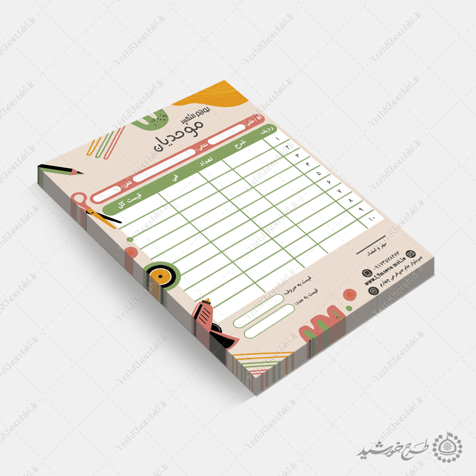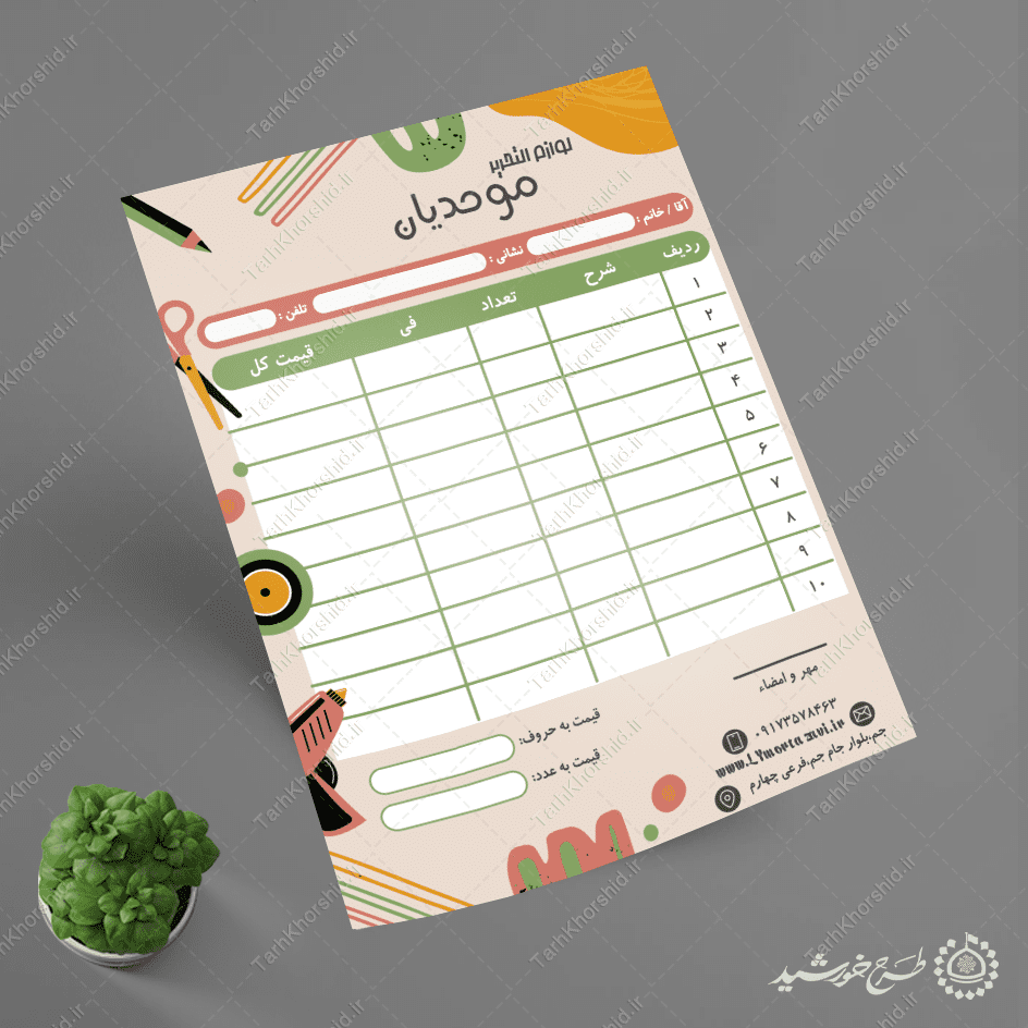 - طرح های مرتبط با فاکتور فروش مناسب برای نوشت افزاری ها را میتوانید در قسمت آرشیو مشاهده نمایید. آرشیو فاکتور لایه باز