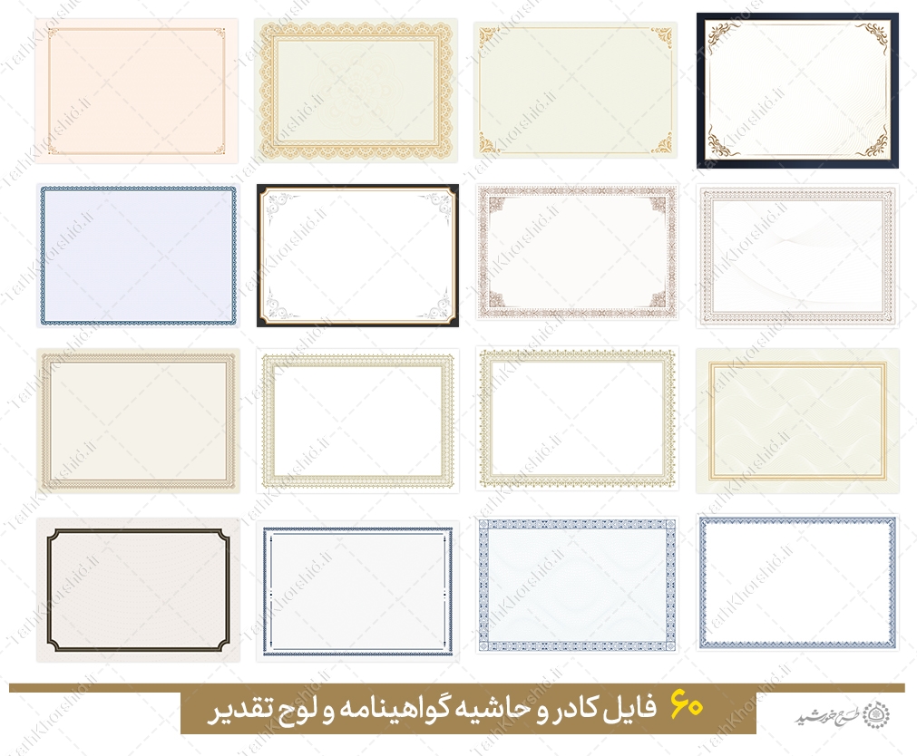 به نام خدا کادر و حاشیه گواهینامه و مدرک . در این پست برای شما مجموعه کادر و حاشیه لوح و گواهینامه اسلیمی و تذهیب آماده کردیم. جهت استفاده در انواع طراحی مناسب است. قابل توجه اسـت که تمامـی فایـل ها توسـط تیـم طراحان چهارده خورشید آماده شده و ویژه طراحان گرافیک می باشد.