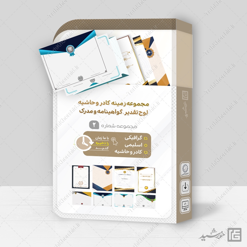 در این مجموعه ۱۵فایل عمودی و افقی کادر و حاشیه گواهینامه و مدرک psd آماده شده که طراحی اختصاصی می باشد.