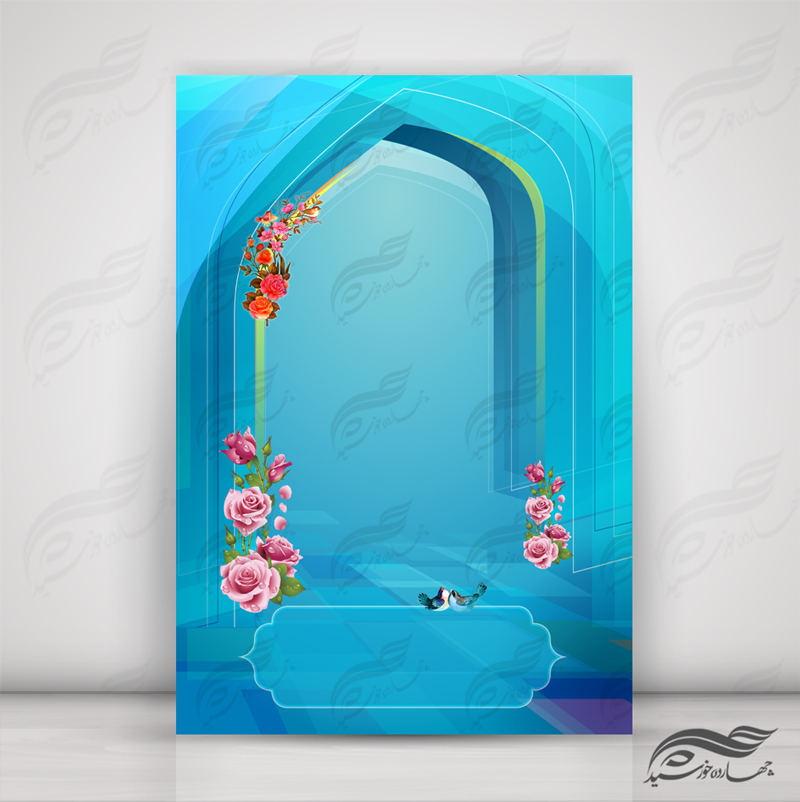 پس زمینه لایه باز پوستر اسلیمی محراب آبی ۳۳ psd