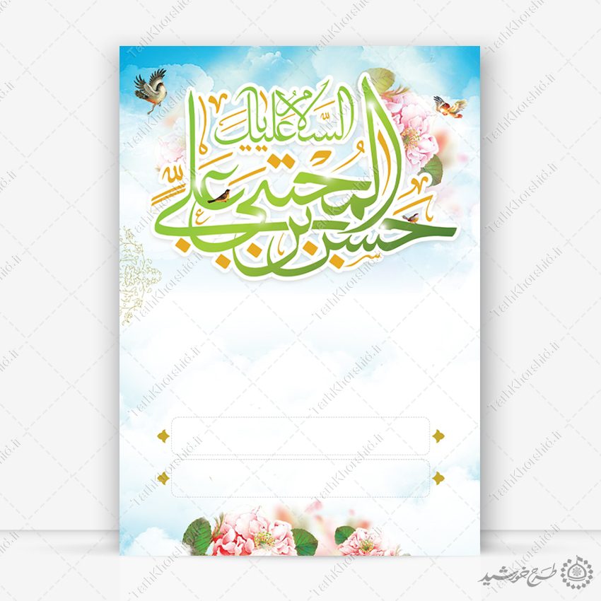 کاربرد زمینه پوستر خام و آماده با طرح آسمانی و اسلیمی ولادت امام حسن ع لایه باز :