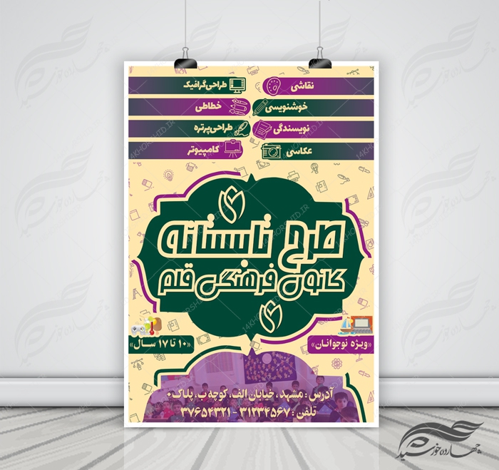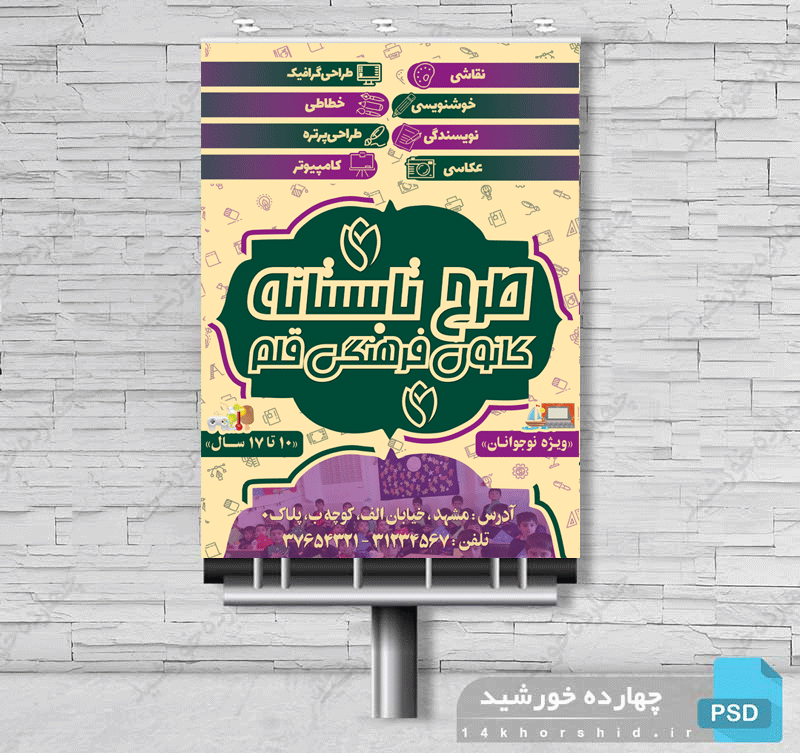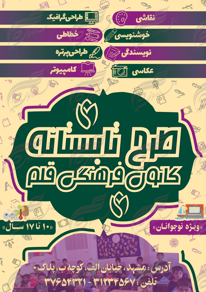 پوستر بنر و تراکت لایه باز کلاس های تابستانه کانون psd