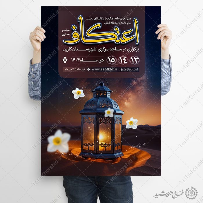 - طرح های پوستر برای برگزاری اعتکاف با المان مذهبی را میتوانید در قسمت آرشیو مشاهده نمایید . آرشیو طرح اعتکاف