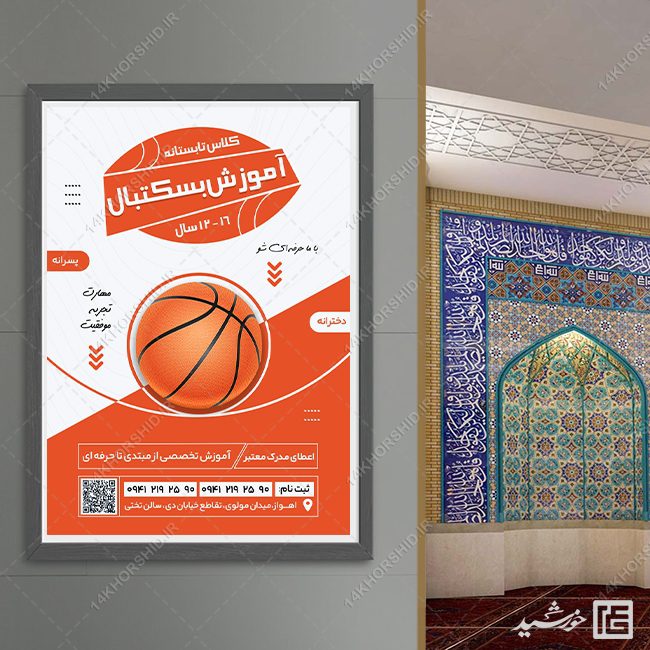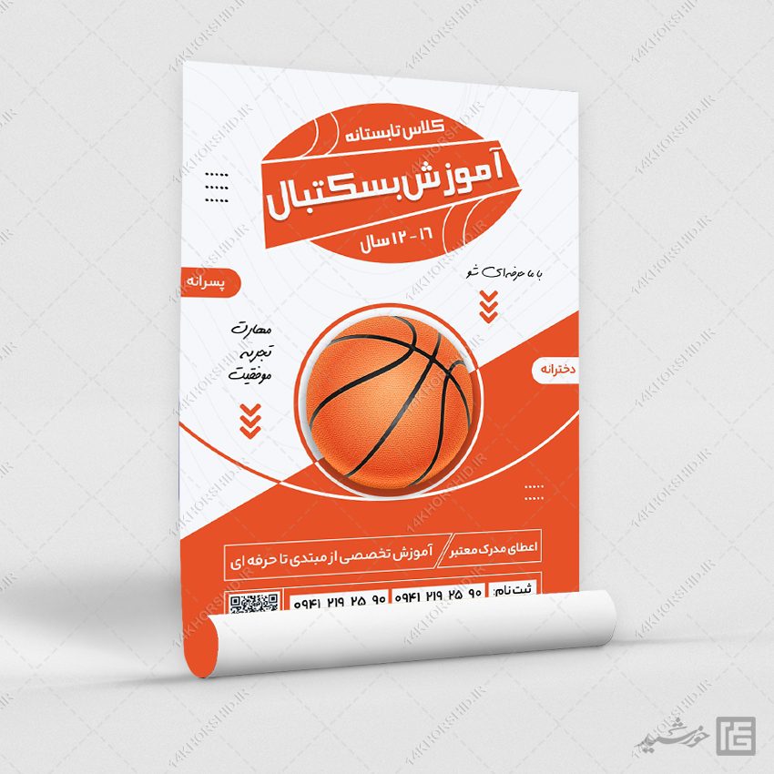 پوستر ثبت نام و آموزش بسکتبال لایه باز
