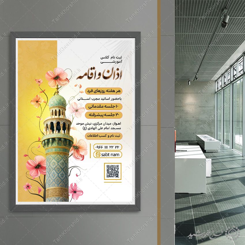 پوستر لایه باز اطلاعیه ثبت نام آموزش اذان و اقامه
