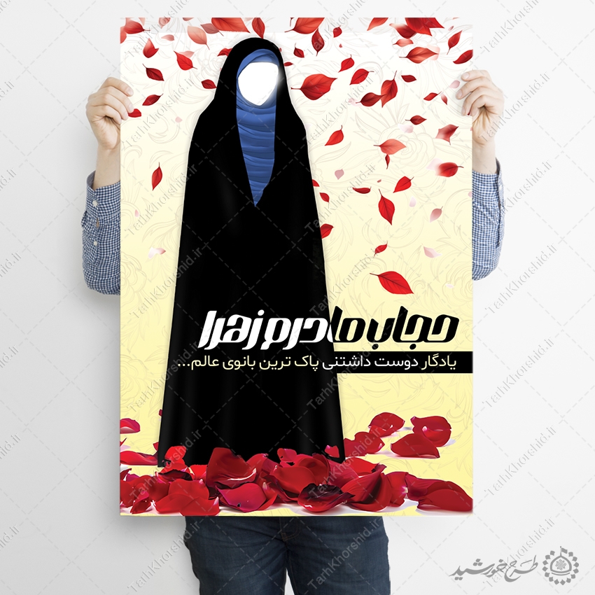 طرح پوستر حجاب یا پوستر با موضوع حجاب و عفاف برای تبلیغات حجاب و عفاف ویژه موضوعات دینی مذهبی . میتوانید برای تبلیغات فرهنگی و مذهبی استفاده نمایید. این طرح کاملا لایه باز هست و میتوانید مطالب و تصاویر خودتون جایگزین کنید.