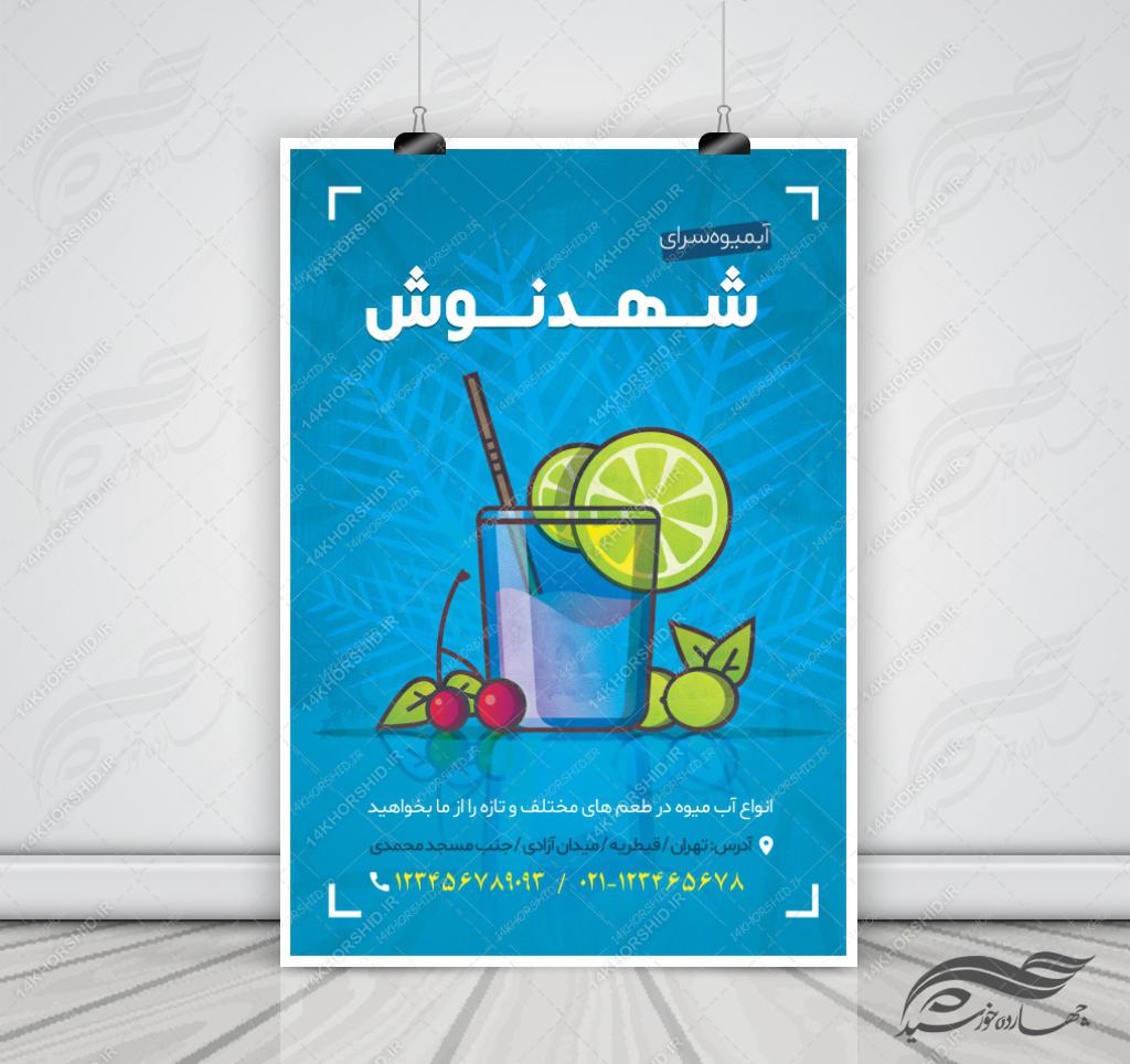 در این پست برای شما عزیزان پوستر لایه باز تبلیغات آبمیوه و نوشیدنی PSDقرار دادیم . طراحی این فایل بسیار با کیفیت می باشد وجهت چاپ روی انواع برگه و در سایز های A3/A4/A5 مناسب است.