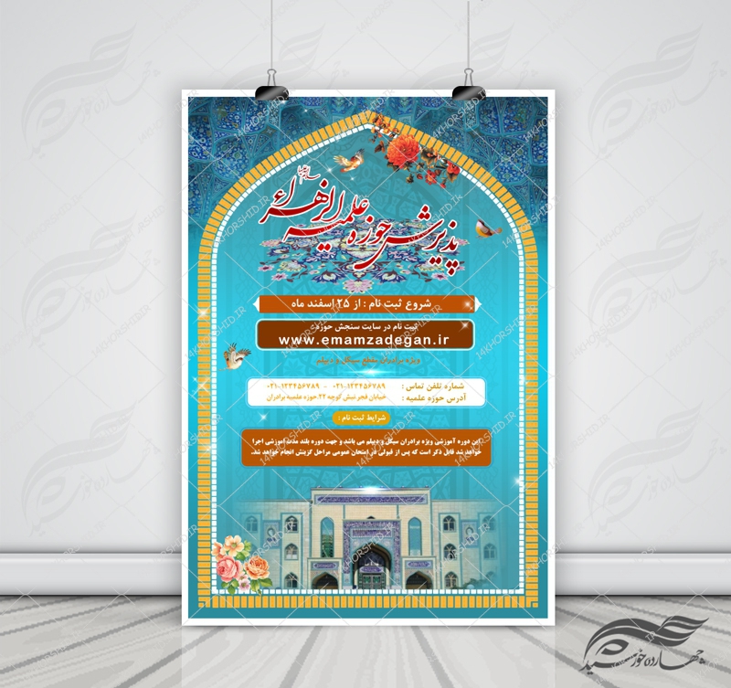 پوستر لایه باز تبلیغات پذیرش و ثبت نام حوزه علمیه ۶ psd