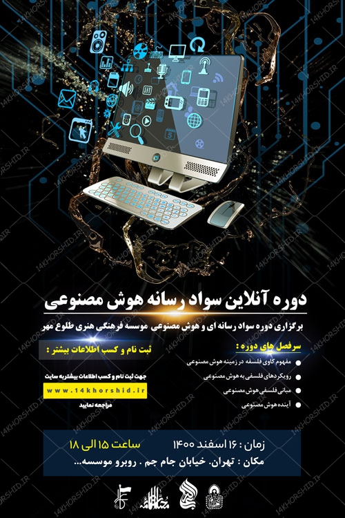 پوستر لایه باز دوره آنلاین سواد رسانه و هوش مصنوعی psd