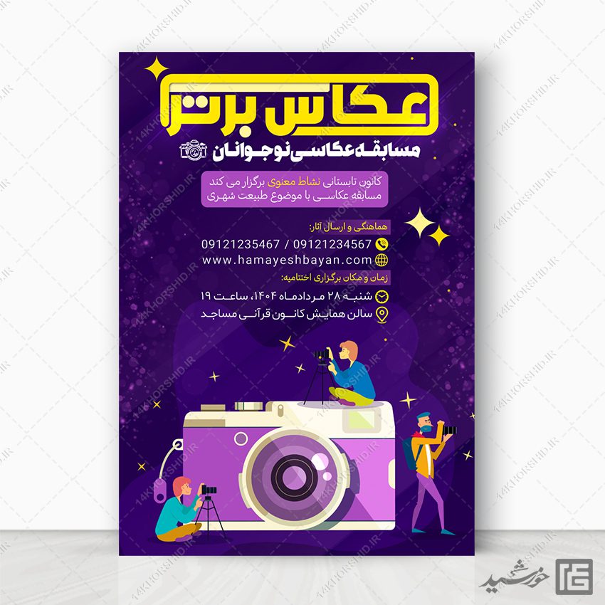 طرح های مرتبط با طرح عکاسی را میتوانید در قسمت آرشیو زیر مشاهده نمایید : آرشیو پوستر لایه باز عکاسی