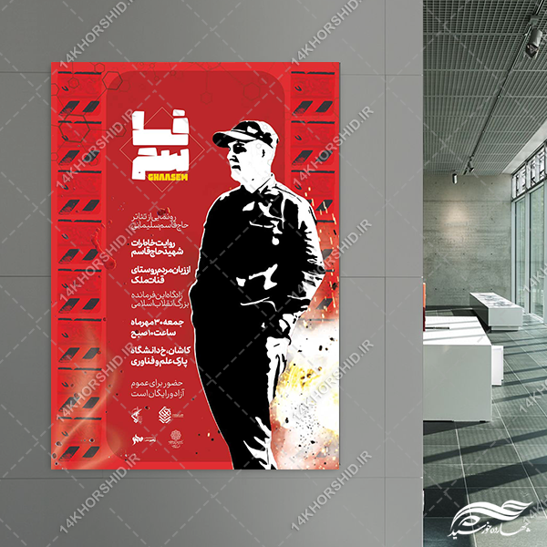 در این پست پوستر لایه باز نمایش و تئاتر شهید سلیمانی psd منتشر کردیم. این فایل بسیار باکیفیت است و در سایز های A3-A4-A5 قابل چاپ می باشد.