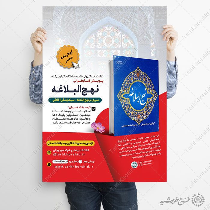 از پوستر ثبت نام مسابقات یا طرح پوستر برای دعوت به کتابخوانی نهج البلاغه میتوانید برای تبلیغات ثبت نام کتابخوانی غدیر . یا طرح های فرهنگی معرفی جشنواره کتابخوانی نهج البلاغه استفاده نمایید.