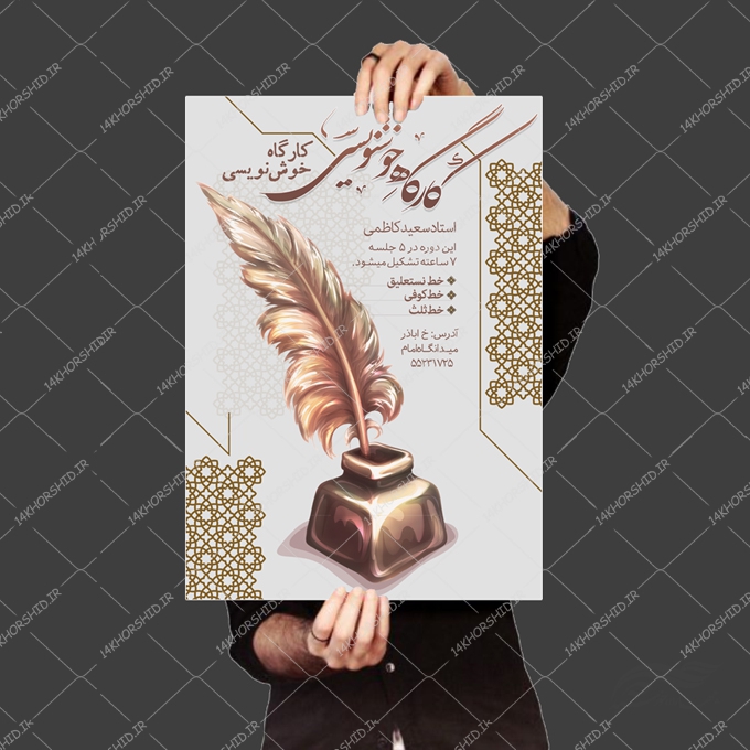 در این پست برای شما پوستر لایه باز کلاس خوشنویسی قرار دادیم.طراحی این فایل بسیار با کیفیت می باشد وجهت استفاده در انواع طراحی مناسب است.
