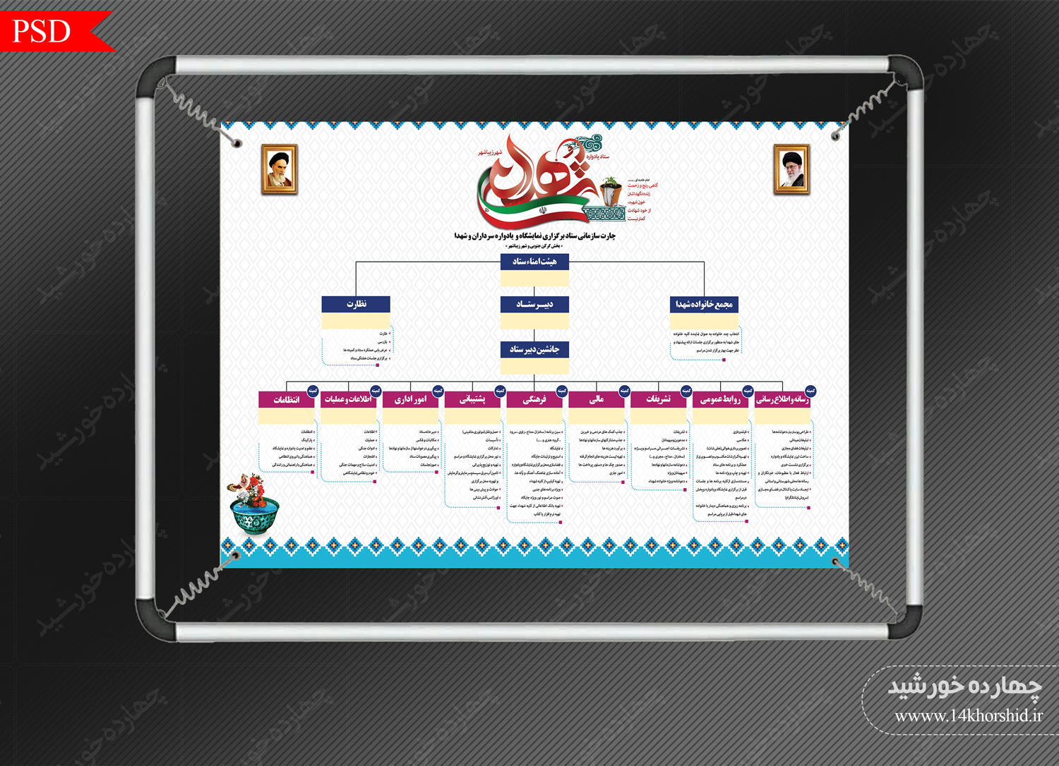 در این پست برای شما عزیزان فایل پوستر و بنر لایه باز چارت یادواره شهدا psd قرار دادیم.طراحی این فایل بسیار با کیفیت می باشد وجهت چاپ روی انواع برگه A4/A3/A2 بنر و فلکس مناسب است.