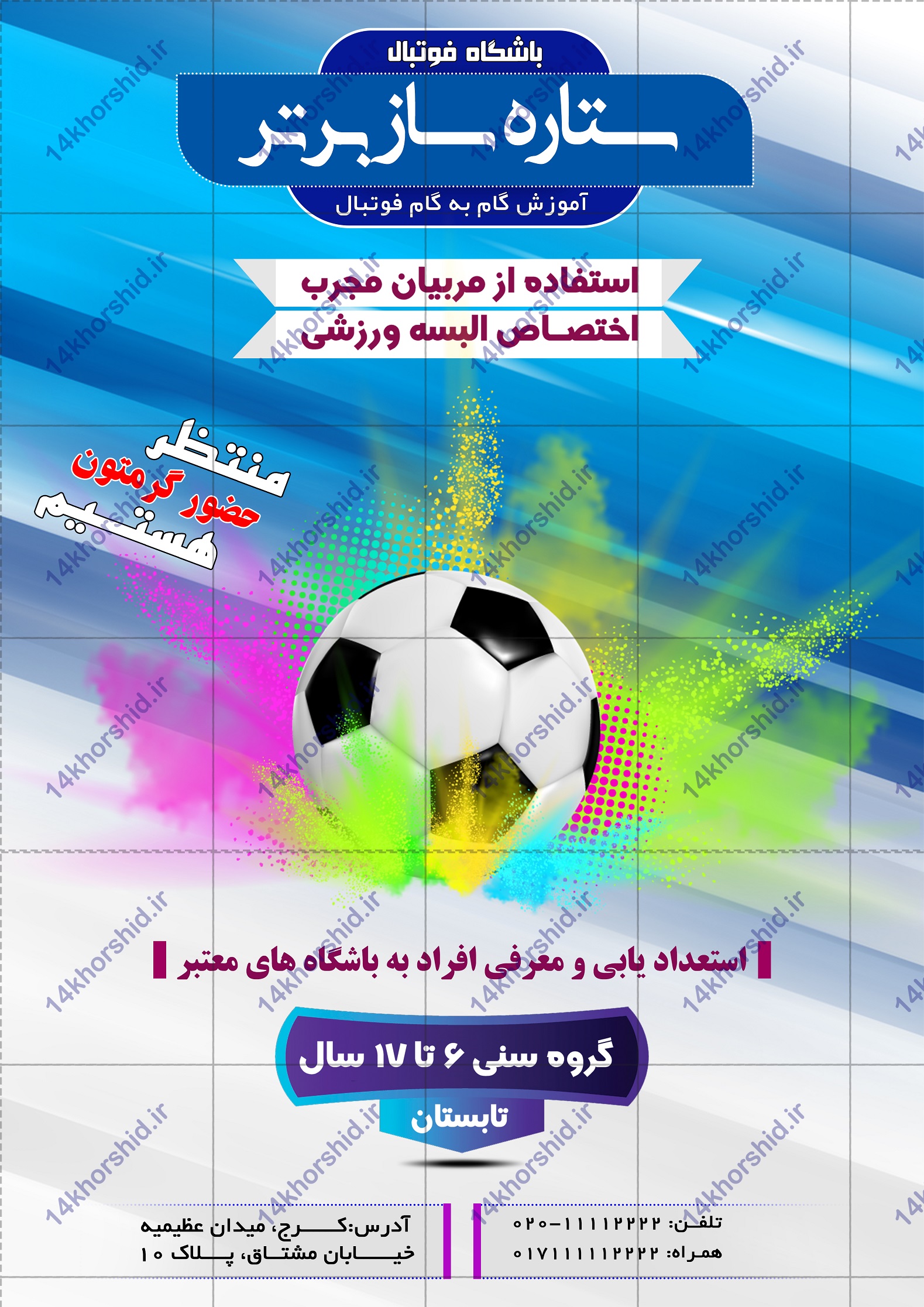 در این پست برای شما عزیزان پوستر و تراکت لایه باز ثبت نام باشگاه فوتبال برتر psd قرار دادیم.طراحی این فایل بسیار با کیفیت می باشد و جهت چاپ روی انواع برگه A3/A4/A5 مناسب است.