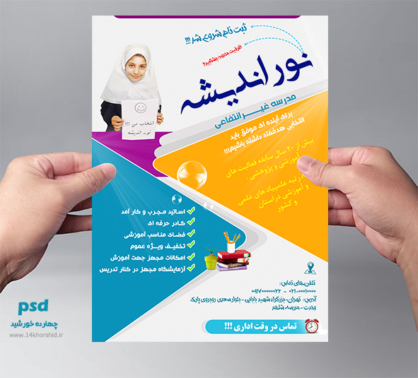 پوستر و تراکت لایه باز تبلیغات مدارس نور psd