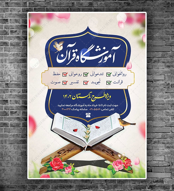 پوستر و تراکت لایه باز ثبت نام مدرسه قرآنی psd