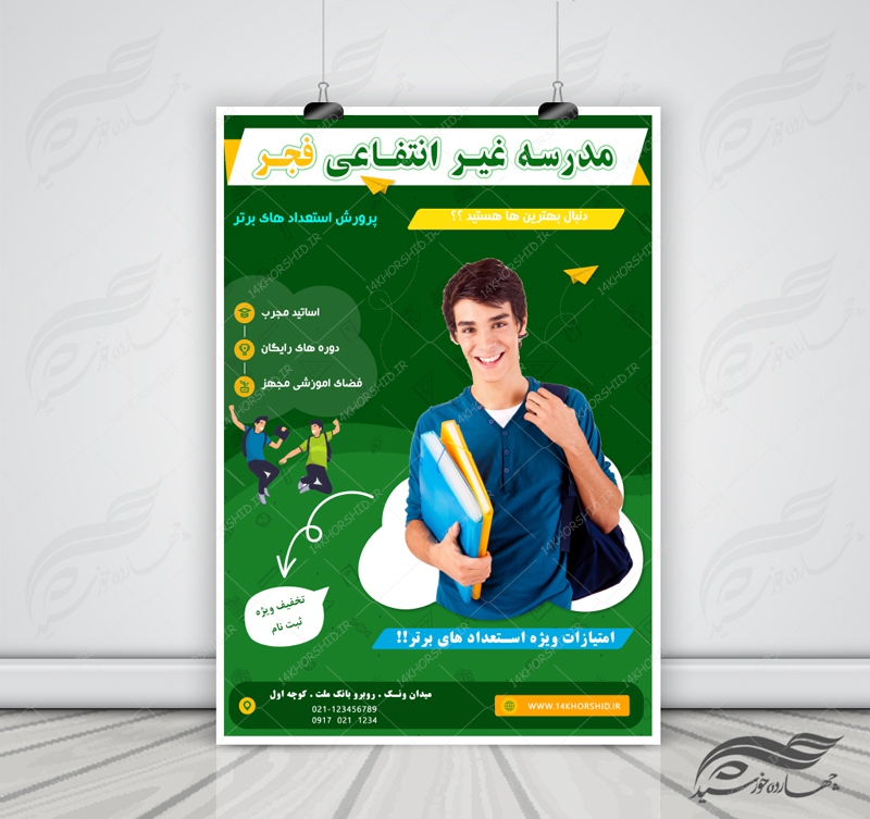 پوستر و تراکت لایه باز ثبت نام مدرسه ۳ psd
