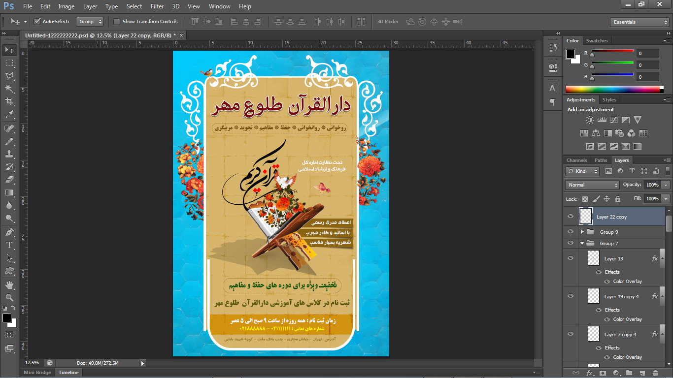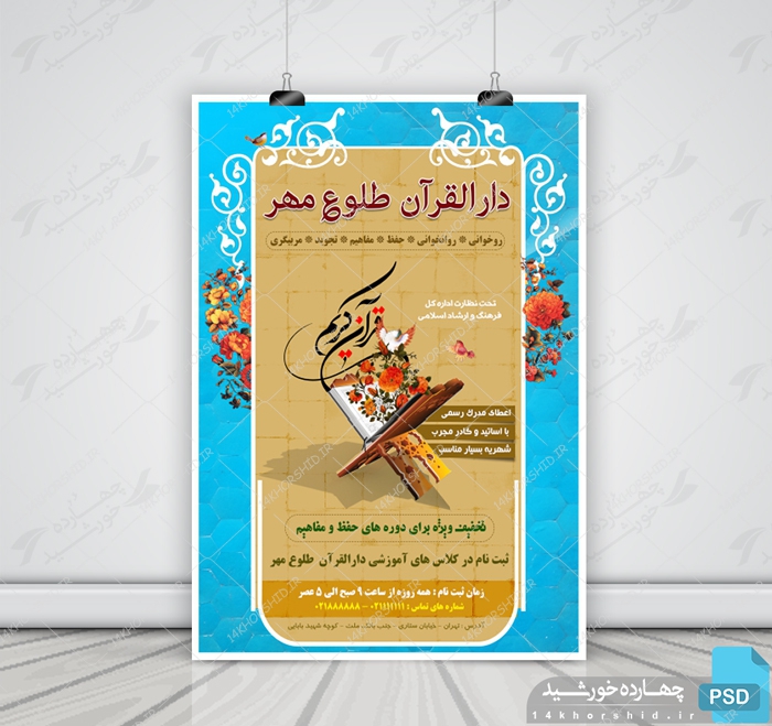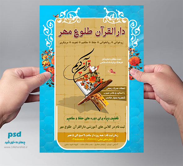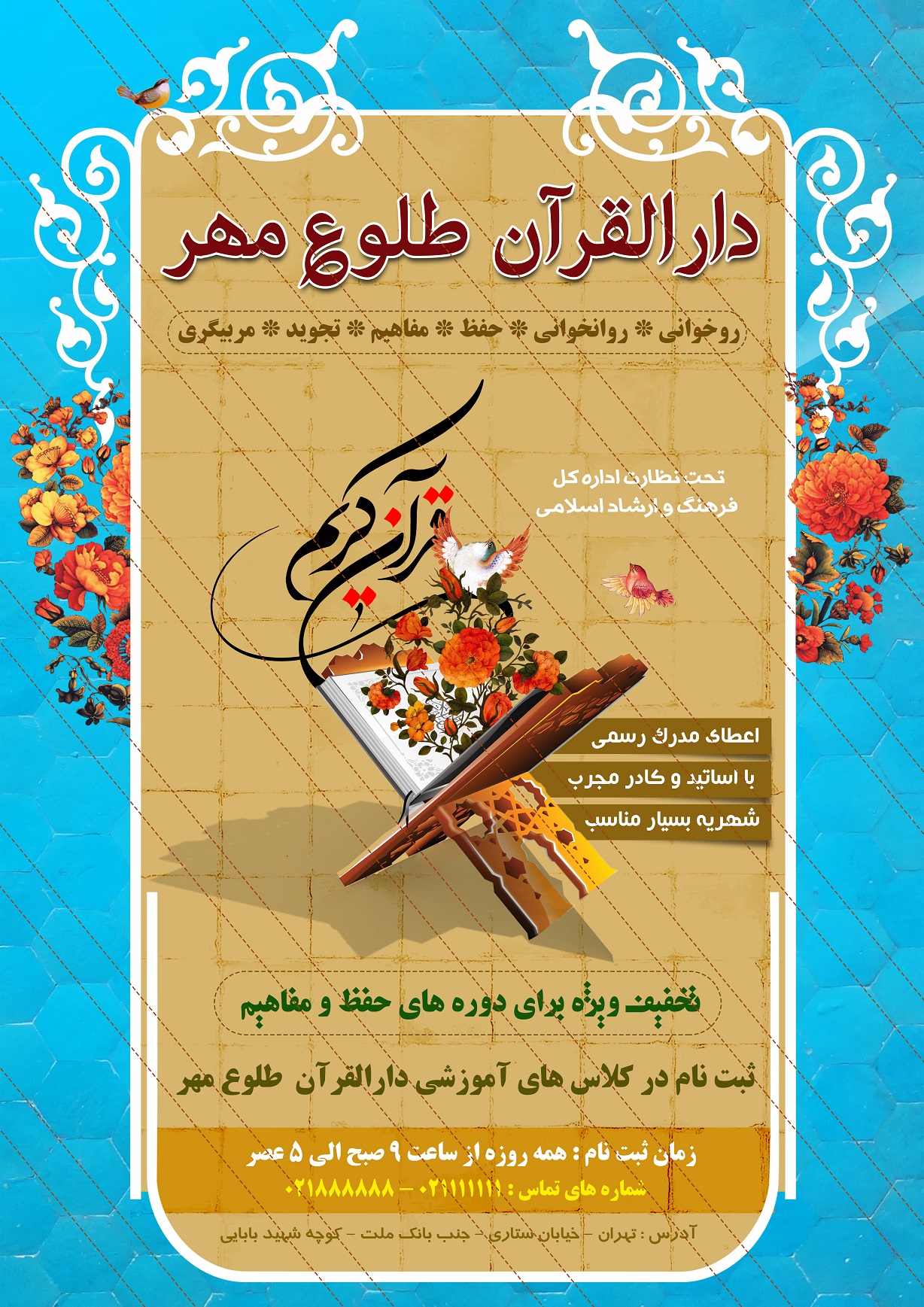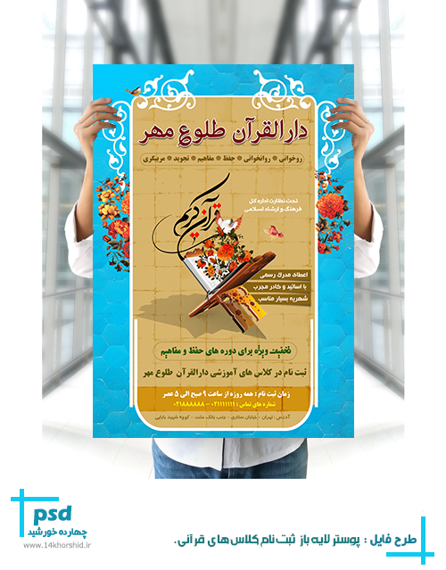 پوستر و تراکت لایه باز ثبت نام کلاس های قرآن psd