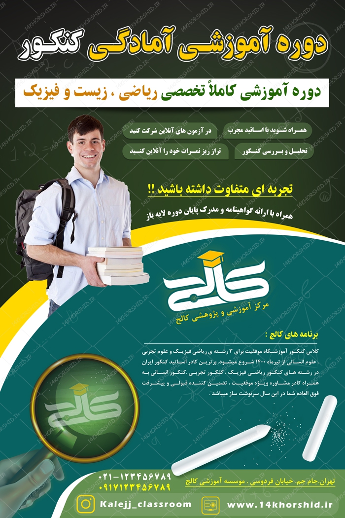 پوستر و تراکت لایه باز دوره های آموزش کنکور psd
