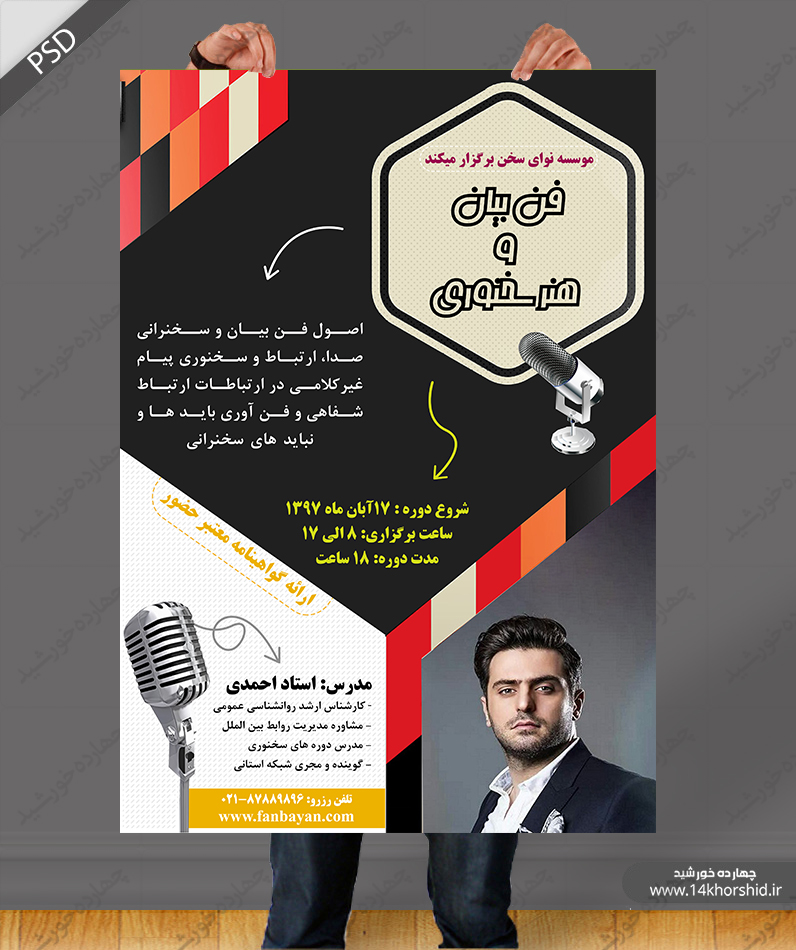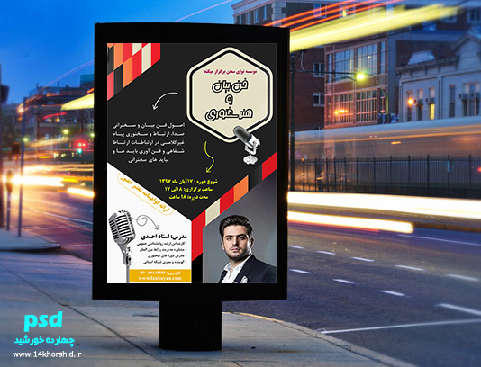 پوستر و تراکت لایه باز سمینار سخنرانی و فن بیان psd