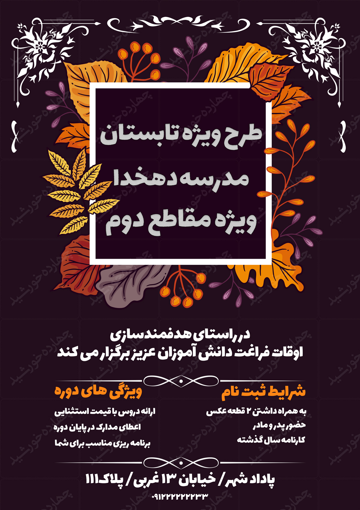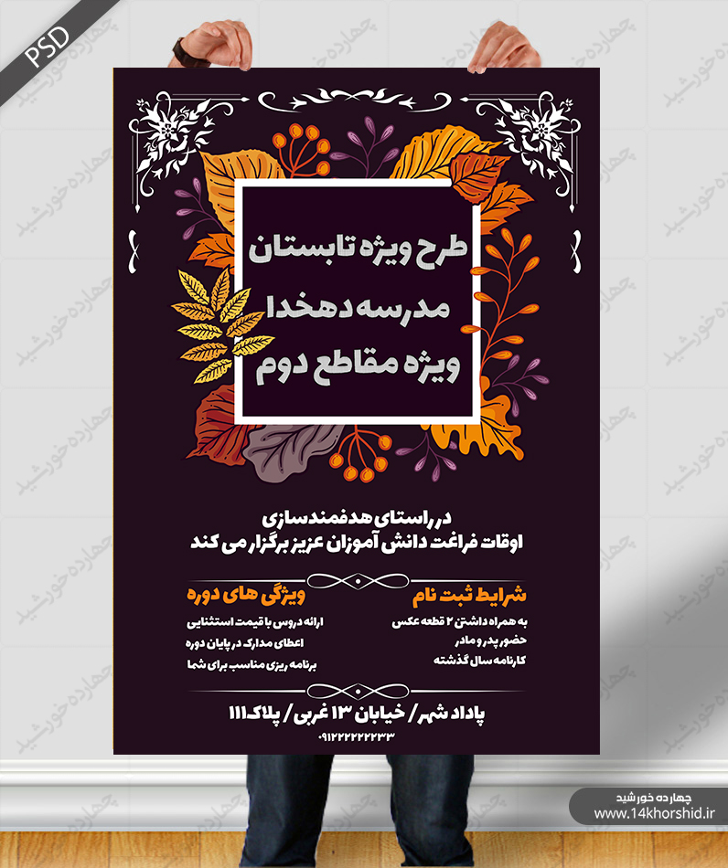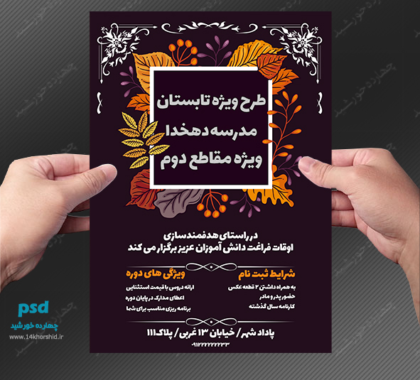 در این پست برای شما عزیزان پوستر و تراکت لایه باز طرح اوقات فراغت مدارس گلبرگ psd منتشر کردیم این فایل دارای طراحی اختصاصی می باشد.