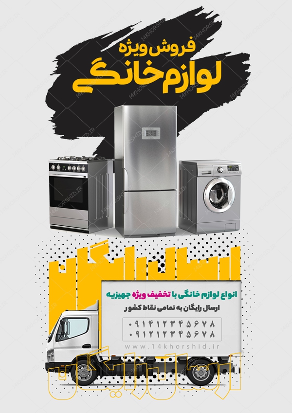 در این پست برای شما پوستر و تراکت لایه باز فروشگاه لوازم خانگی psd قرار دادیم.طراحی این فایل بسیار با کیفیت می باشد وجهت استفاده در انواع طراحی مناسب است.