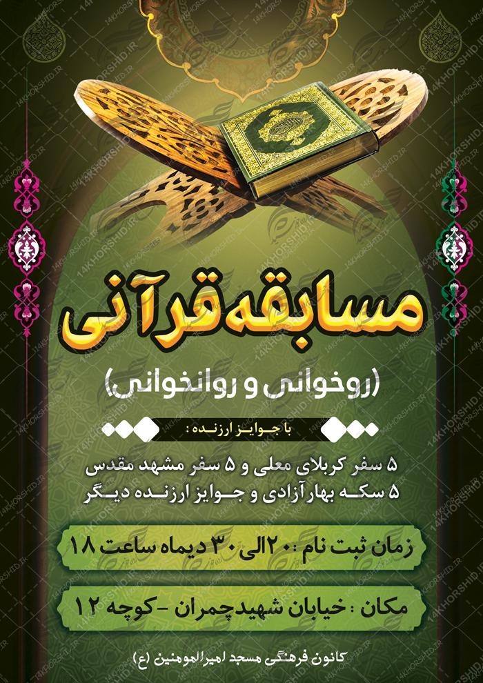 پوستر و تراکت لایه باز مسابقات قرآنی مسجد ۷ psd