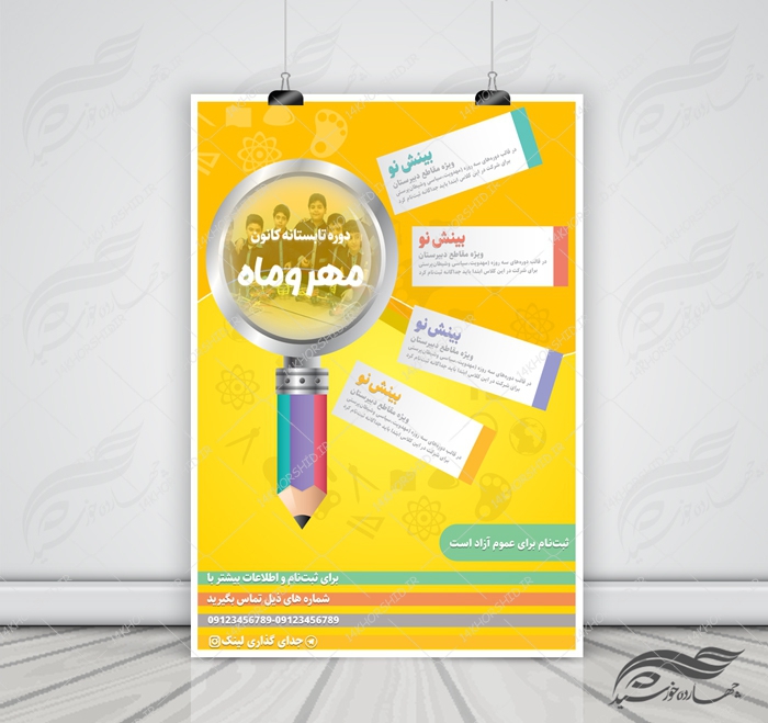 در این پست برای شما عزیزان پوستر و تراکت لایه باز کلاس های فوق العاده تابستانی psd قرار دادیم.طراحی این فایل بسیار با کیفیت می باشد. و جهت چاپ در سایز A4 / A5 / A3 و انواع بنر مناسب است.