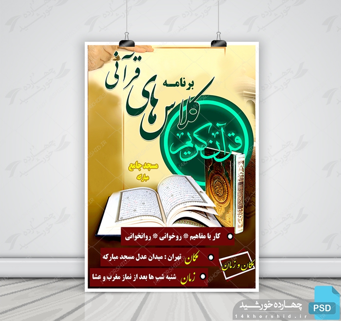پوستر لایه باز ثبت نام کلاس های قرآنی psd