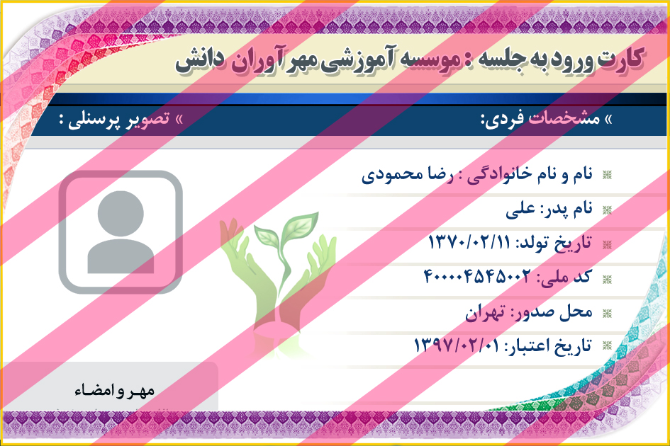 در این پست برای شما عزیزان طرح کارت لایه باز ورود به جلسه مهر psd منتشر کردیم، فایل لایه باز بوده ومی توانید در نرم افزار قدرتمند فتوشاپ به دلخواه در تمامی قسمت ها تغییرات ایجاد نمایید.