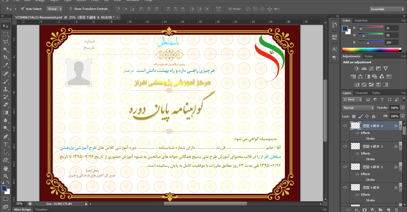 1 دیدگاه برای گواهینامه و مدرک پایان دوره لایه باز psd